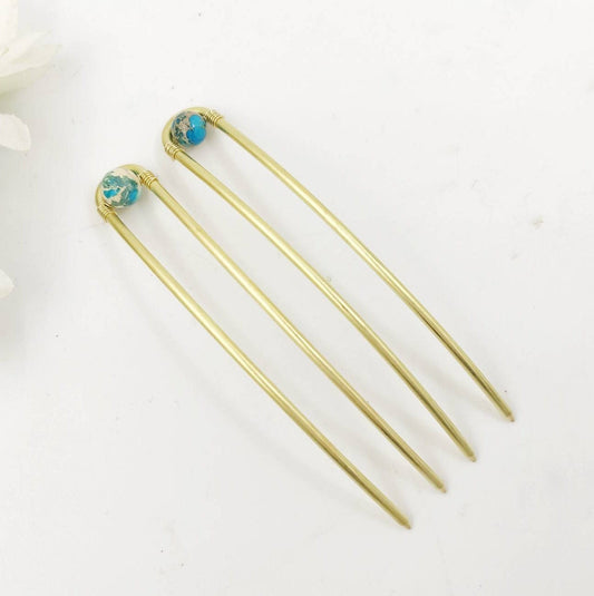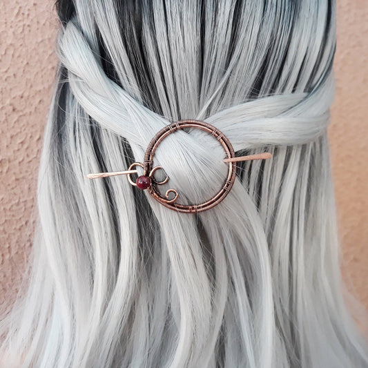 Embellece tu cabello con este exquisito pasador circular hecho a mano con alambre de cobre y una cuenta de lepidolita.